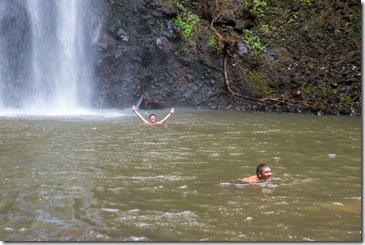 Am Ende des Weges erwartete uns dann unser wohlverdienter Lunch und ein Sprung in ziemlich kaltes Wasser am Fuße des Wasserfalls. Nach nur 30 Minuten hieß es dann wieder Stock zur Hand und den Weg wieder zurück!