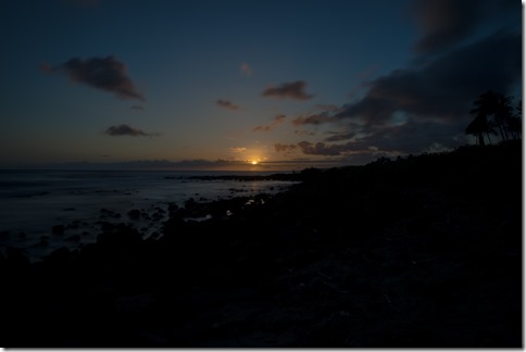 Den Höhepunkt des Tages sollte der Sonnenuntergang am Ka’ena Point am westlichsten Ende O’Ahus bilden. Den 3 km langen Weg bis dahin, nahmen wir gerne in Kauf. Allerdings hat uns keiner gesagt, dass der “karge und bergige” Weg mehr als nur karg und bergig war. Er war matschig und teileweise unpassierbar –es wurde der längste 3 km Weg ever! Nach einer gefühlten Ewigkeit (die Sonne war dabei unterzugehen – zumindest gingen wir davon aus, da irgendwann Wolken aufgezogen sind, es anfing zu regnen und wir keine Sonne mehr sahen) haben wir beschlossen, dass wir den Ka’ena Point erreicht hatten -sicher waren wir uns nicht, allerdings war auch kein Ende in Sicht-, schossen die obligatorischen Fotos und gingen den gaaanzen Weg wieder zurück. Die Tatsache, dass es irgendwann ziemlich dunkel wurde, machte die Sache nicht wirklich besser.